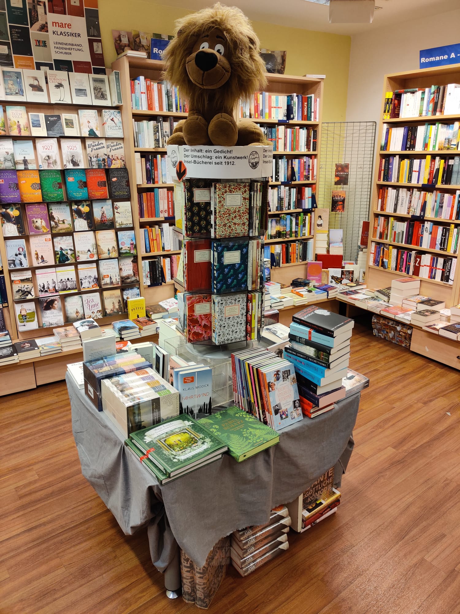 Beim Rausgehen schaue ich mich noch einmal um. Neben Sachliteratur zum Krieg in der Ukraine stehen am Ausgang die Neuerscheinungen, und ein Buch weckt direkt mein Interesse. Ich bezahle es und gehe voller Vorfreude auf den Krimi aus dem Laden in die sonnige, belebte Fußgängerzone.