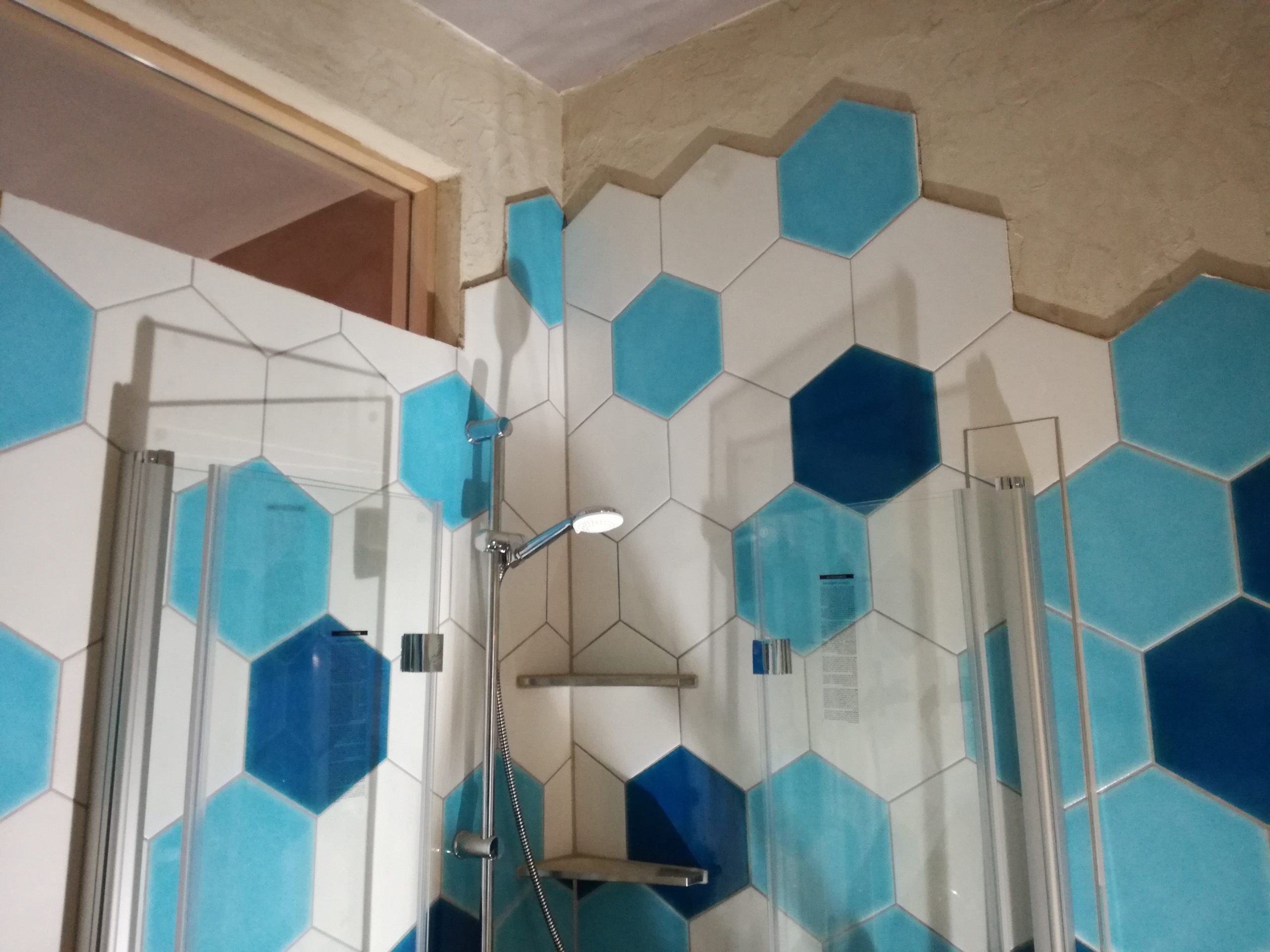 Das kleine Badezimmer ist innenliegend. Oberlichter spenden etwas Tageslicht. Zusammen mit den blauen wabenförmigen Fliesen und den in den Wandputz befestigten Muscheln, ergibt sich das Bild eines Ostseeurlaubes. Auf einem klappbaren Tritt steht Daniel. In seiner Hand ein Schraubendreher. Er trägt eine schwarze Arbeitshose und einen blauen Pullover mit Farbklecksen als er nahe der Zimmerdecke den Entlüftungsventilator einbaut. „Ich bin Physiker, wohne seit 2006 hier in der Wiesenstraße und habe das Hausprojekt als solches mitgegründet.“, stellt er sich vor. Es war im Herbst 2016 als die damaligen Mietparteien bemerkten, dass Kaufinteressenten das Haus fotografierten. „Das ist uns damals eigentlich nicht vorgekommen im Gegensatz zu heute.“, holt er aus: „Und die alte Eigentümerin hat ein Wertgutachten vom Haus anfertigen lassen.“ Daraufhin haben die Mietenden überlegt, wie sie den Hausverkauf verhindern könnten und sind auf das Modell des MHS gestoßen. Daniel steigt den Tritt hinab. Setzt sich darauf. Das Konzept der „Eigentumsneutralisation“ hat ihn überzeugt und, dass das Haus praktisch immer den Menschen gehört, die darin wohnen. Die Eigentümerin spielte mit. Anfang 2018 wurde der Kaufvertrag unterschrieben. „Gleich im ersten Sommer nach dem Kauf wurde die Wärmedämmung vom Dach und von der Außenfassade umgesetzt, im gleichen Zug wurde die alte Gasheizung durch einen neuen Brennwertkessel ersetzt und wir haben die dann auch ergänzt um eine Solarthermieanlage.“, fängt er an aufzuzählen: „Und die andere Sache, die ganz schnell klar war, war, dass die Elektrik im gesamten Haus neu gemacht werden muss. Und dann hat sich herausgestellt, dass der Putz alt und bröckelig war und nur noch durch die Tapete zusammengehalten wurde.“