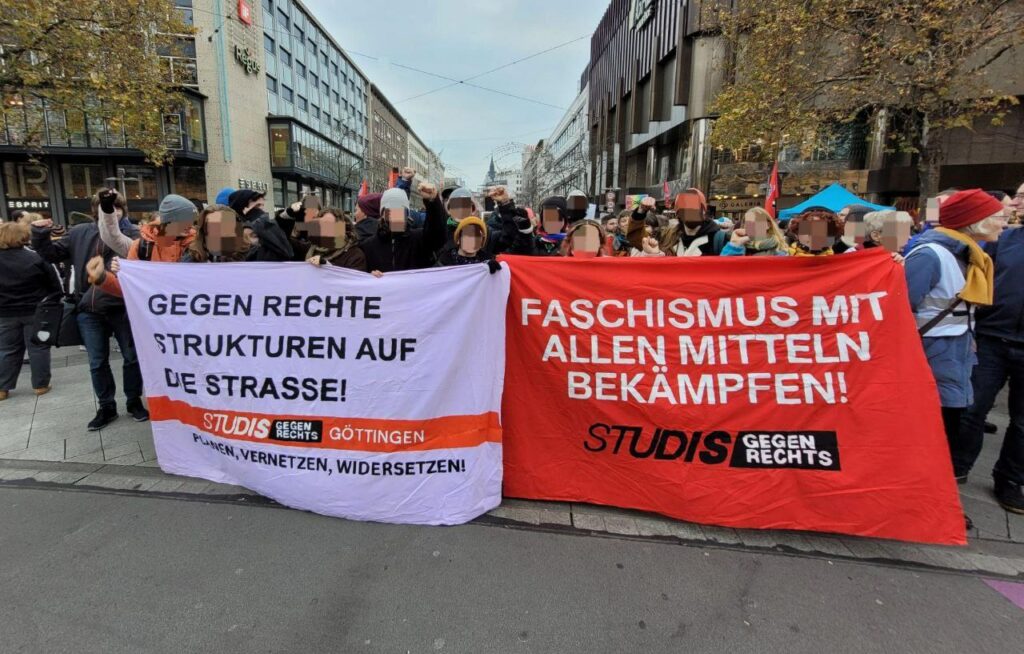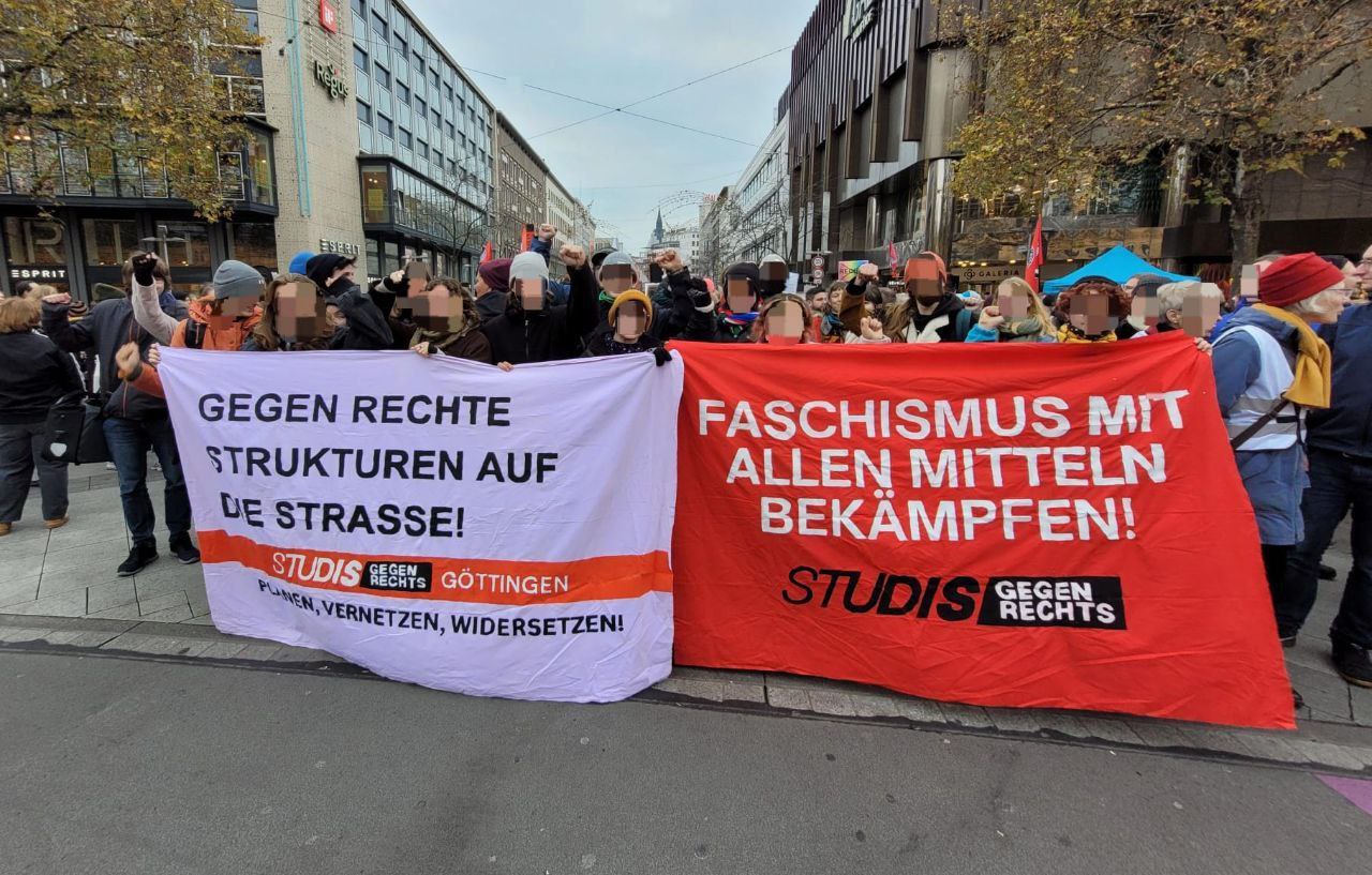 In den vergangenen Wochen hat sich die Arbeit von SGR Göttingen – vor allem die der AG „Widersetzen“ – um die Planung und Organisation des Protestes gegen den Querdenken-Aufmarsch am 1. Februar in Göttingen gedreht. „Es war klar, dass dem Aufruf viele rechte Gruppierungen folgen würden“, sagt Till, Mitglied der AG Widersetzen. „Also haben wir zusammen mit dem Bündnis gegen Rechts mobilisiert, um einen stabilen Gegenprotest auf die Straße zu bringen.“ Die AG organisiert vor allem Demonstrationen gegen rechte Akteur:innen – ein zentrales Anliegen der Gruppe. Seit ihrer Gründung im Wintersemester hat sich SGR Göttingen bereits an zahlreichen Protesten beteiligt. „Beim Querdenken-Aufmarsch wussten wir, dass dieser nicht nur aus klassischen Impfgegner:innen bestehen würde“, erklärt Till. „Solche Proteste werden immer wieder von rechten Gruppen genutzt, um sich zu vernetzen und ihre Hetze salonfähig zu machen.“ Gerade deshalb sei es wichtig, klare Gegenpositionen einzunehmen. Gemeinsam mit „antifaschistischen“ Gruppen, Gewerkschaften und anderen zivilgesellschaftlichen Organisationen stellte sich SGR der Versammlung entgegen. „Wir haben gezeigt, dass es in Göttingen keinen Platz für rechte Hetze gibt“, betont Till.