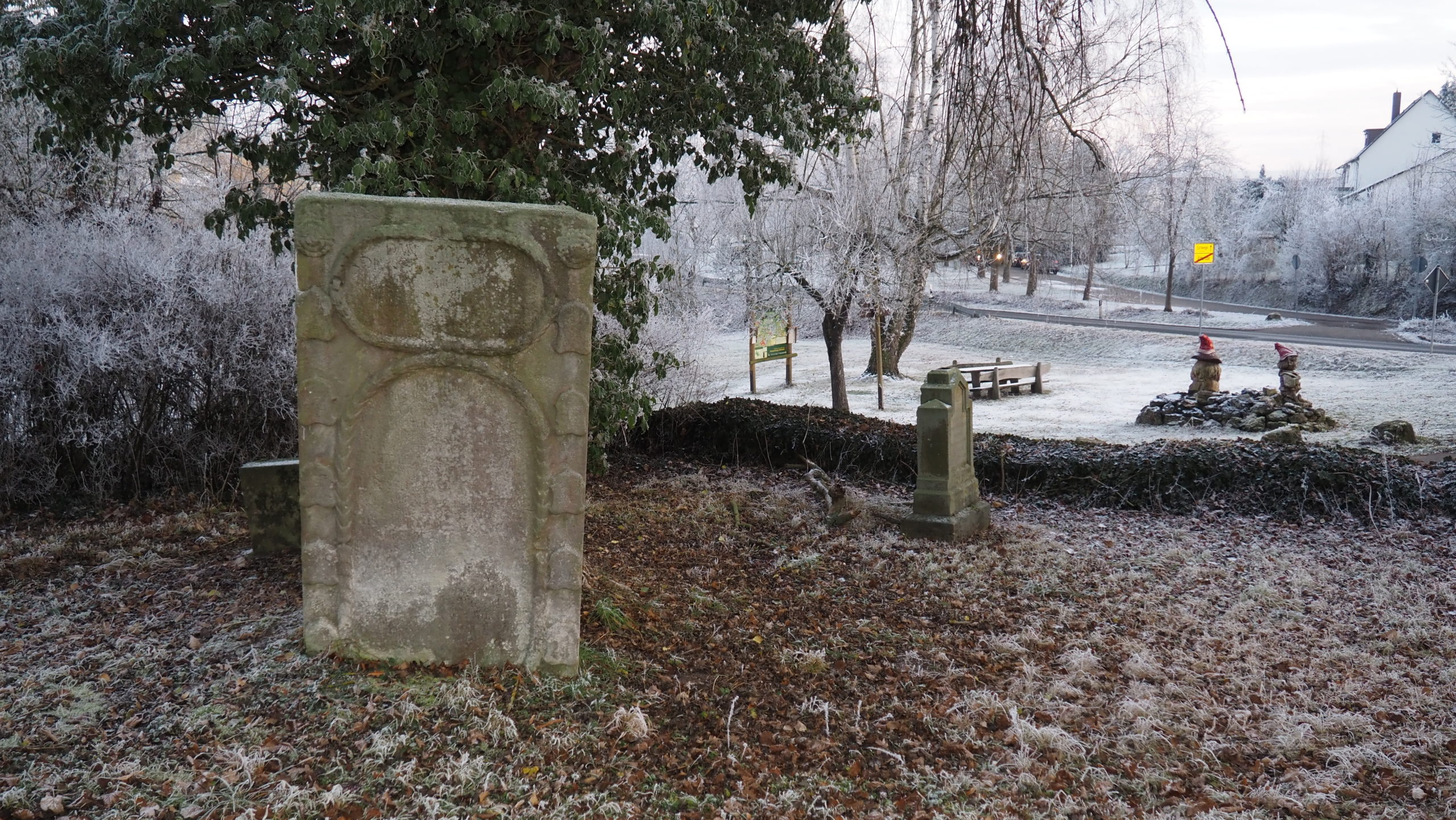 Ich steige aus meinem Auto und höre in weiterer Entfernung Kirchenglocken läuten. Wie passend, wenn man bedenkt, wo ich mich gerade befinde. Eine alte Kirchenruine als Lost-Place? Das erste was mir ins Auge fällt, ist ein abgebrochenes Kreuz was direkt hinter der Mauer steht. Ich gehe weiter an der Mauer entlang und gelange zum Eingang. Wenn man an der Holztafel am Eingang vorbei geht, sieht man viele alte Grabsteine. Durch meinen Kopf schwirrt direkt die Frage, wie alt diese Gräber wohl sind. Die Schriften sind leider nur schwer zu erkennen. Auf einem Stein kann ich entziffern, dass ein Jacob Becker im Jahr 1791 geboren wurde, das Jahr, in dem er starb, könnte 1838 oder 1858 sein. Wind und Wetter haben den Grabsteinen in den letzten 200 Jahren ordentlich zugesetzt. Die Verwitterung macht die meisten Sprüche leider unlesbar.